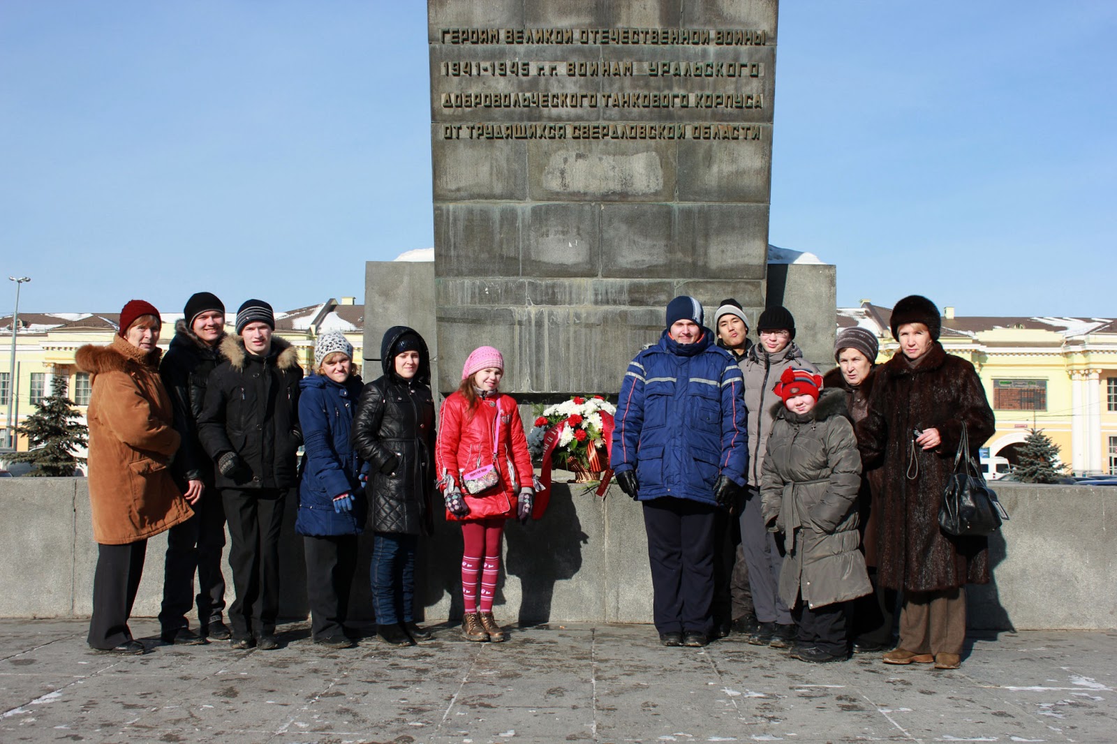 Во время возложения цветов в Екатеринбурге присутствовали преподаватели и ученики школы «Эверест», которые приехали экскурсионной группой, к памятнику установленному в честь наших земляков. Активисты движения поговорили о Великом трудовом подвиге, об отважных уральских воинах прошедших в составе корпуса от Орла до Праги. Рассказали ребятам о том, что корпус участвовал в одной из самых грандиозных танковых битв - сражении на Курской дуге, а так же освобождал город Львов, за что и получил наименование Львовский. Сфотографировались на фоне памятника и цветов.